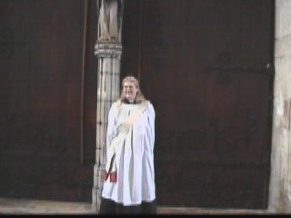 Rachel does her "miss deacon 2004" thing in York Minster. (She's not allowed to wear her stole like a scarf until priested, apparently).
